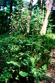 Meist bleiben die Stümpfe der abgeschlagenen Bäume am Leben und schlagen schnell wieder aus. Die lebenden Wurzeln durchziehen weiterhin den Boden, was einerseits eine geringere Erosionsgefahr und andererseits ein geringeres Nährstoffangebot gegenüber den Kahlschlägen bedeutet, wo die abgeschlagenen Wurzeln mineralisiert werden können (BRACKEL & ZINTL 1983). Durch das zügige Ausschlagen finden Waldpflanzen Schutz vor übermäßiger Sonneneinstrahlung wie auch vor Abstrahlung in der Nacht und bleiben so auf vielen kleinen Inseln über den Schlag verteilt erhalten. Auch Pflanzen der Saumgesellschaften können sich im Schutze der jungen, strauchförmigen Bäume ansiedeln. Weil keine neuen Pflanzungen vorgenommen werden und beim Abtransport der kleineren und leichteren Stämme des Niederwaldes der Boden weniger verletzt wird, kann sich Epipactis helleborine rasch wieder ausbreiten. Ein weiterer Grund dafür, daß diese Orchidee dem Konkurrenzkampf besser gewachsen ist, liegt neben ihren bescheidenen Ansprüchen an den Kalkgehalt des Bodens und an die Lichtverhältnisse vor allem daran, daß sie mehr als andere Orchideen Stickstoff verträgt. DIETERICH (1965) berichtet von einem massierten Auftreten von Epipactis helleborine nach Düngungsmaßnahmen in einem Waldgebiet im Schwarzwald und führt dies auf die durch die Düngung veränderten Humusformen zurück, die dann dem Orchideensamen bessere Keimungsmöglichkeiten bieten. Eine gewisse Stickstoffverträglichkeit ist in unserer Kulturlandschaft, wenn auch kleinräumige aber weitverbreitete Biotoptypen von Orchideen angenommen werden, ein nicht zu unterschätzender Vorteil. Den am besten besetzten Standort der Breitblättrigen Stendelwurz, er ist mit mehr als 70 Pflanzen bestückt, fanden wir auf dem Gipfelplateau der Ehrenbürg. Es handelt sich um eine thermophile Schlagflur auf Malmschutt am Rande einer landwirtschaftlich genutzten Fläche (auf die pflanzensoziologische Zusammensetzung wird bei Listera ovata näher eingegangen). Vor allem die Rot-Buche (Fagus silvatica) und die Stil-Eiche (Quercus robur) wurden an diesem Wuchsort vor Jahren auf Stock gesetzt und erreichen inzwischen schon wieder eine Mächtigkeit von mehr als sieben Metern. Im Randbereich dieses Saums findet Epipactis helleborine ideale Bedingungen, denn durch die Südwestexposition und den sich schnell erwärmenden Kalk erhalten die Pflanzen Wärme und Lichtgenuß (maximale Beleuchtungsstärke 20 000 Lux). Der Blühbeginn liegt bei der Breitblättrigen Stendelwurz im Bereich der Ehrenbürg in der letzten Juliwoche. Stattliche Pflanzen von über 90 Zentimeter Wuchshöhe sind keine Seltenheit; an der größten Pflanze zählten wir Mitte September 61 prall gefüllte Fruchtkapseln, die bereits ausgesamt hatten. Doch nur wenige Meter weiter im Zentralbereich des Niederwaldes wird die Sonneneinstrahlung durch den sich sehr üppig entwickelnden Unterwuchs stark reduziert (maximale Beleuchtungsstärke 10 000 Lux), so daß die Pflanzen nur zwischen 15 und 20 Zentimeter hoch wachsen und nur wenige Blüten ausbilden. Die Fruchtkapseln fanden wir Ende September noch geschlossen vor. Im Randbereich der Schlagflur lagen die pH-Werte für den trockenen Ah-Horizont zwischen 6,6 und 7,0 / 5 Messungen ( 6,0 / 3 Messungen). In einer Epipactis-helleborine-Population, die wir in einer Verlichtung des Wärmeliebenden Eichenmischwaldes an der Südwestseite des Rodenstein Ende August 1998 kartierten, fielen uns einige besonders zierliche Pflanzen von geringer Wuchshöhe auf. Der Habitus dieser Pflanzen wurde geprägt durch kleine, länglich schmale Blätter von gelbgrüner Färbung, von denen das unterste relativ erdfern ansetzt. Als charakteristisch erwiesen sich ferner die kurzen, gegeneinander gewinkelten Internodienabschnitte (die Winkel lagen zwischen 120 Grad und 140 Grad), wodurch der äußerst dünne Stengel sich zick-zack-förmig nach oben streckte (bessere Stabilität?).Während bei den "normalen" Epipactis-helleborine-Pflanzen die Fruchtkapseln einen kurzen Stil aufweisen und parallel zum Stengel nach unten hängen, stehen die Fruchtkapseln der "Zick-Zack"-Helleborine mit einem deutlich längerem Stil fast waagrecht ab und bilden mit dem Stengel einen Winkel von annähernd 90 Grad. Über ähnliche Pflanzen berichtet TIMPE (1997) vom Hohensteinmais bei Kirchfidisch im Südburgenland/Österreich. Obwohl sich die "Zick-Zack"-Helleborine von der "normalen" Helleborine im Bereich der Ehrenbürg morphologisch deutlich unterscheidet, scheinen die ökologischen Standortansprüche beider Typen nahezu identisch zu sein. Bei dem trockenen und flachgründigen Boden der ca. 20 Quadratmeter messenden Verlichtung handelt es sich um eine Proto-Rendzina. Der pH-Wert des Ah-Horizonts ergab für beide Epipactis-Typen den Wert 6,8 / 4 Messungen (5,4 - 6,2 / 5 Messungen). Die Beleuchtungsstärke lag zwischen 1000 Lux im Schatten der Bäume und 5000 Lux auf sonnenbeschienenem Waldboden. Fundierte Aussagen über den taxonomischen Wert dieser Beobachtungen setzen eine gründliche und umfangreiche Blütenanalyse voraus, die erst im Sommer 1999 möglich ist. Die Populationen von Epipactis helleborine im Bereich der Ehrenbürg zeigen sich durchaus einheitlich; lediglich bei der Färbung der Perigonblätter lassen sich die unterschiedlichsten Varianten ausmachen, vom blassen Grün bis hin zum Purpurviolett reicht die Farbskala des Epichils. Als relativ verbreitete Waldart besteht für den Bestand von Epipactis helleborine im Bereich der Ehrenbürg keine Gefährdung. |